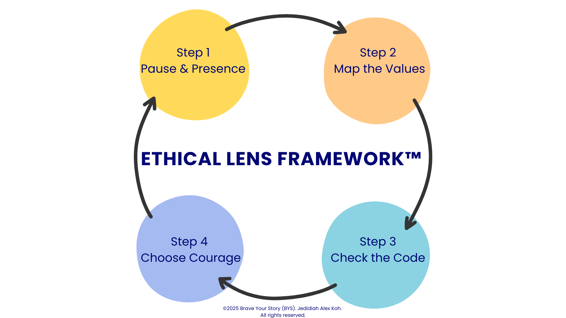 The Ethical Lens Framework™ is a practical decision-making guide for coaches, leaders, and coaching supervisors to navigate complex, high-stakes, and often ambiguous ethical situations.